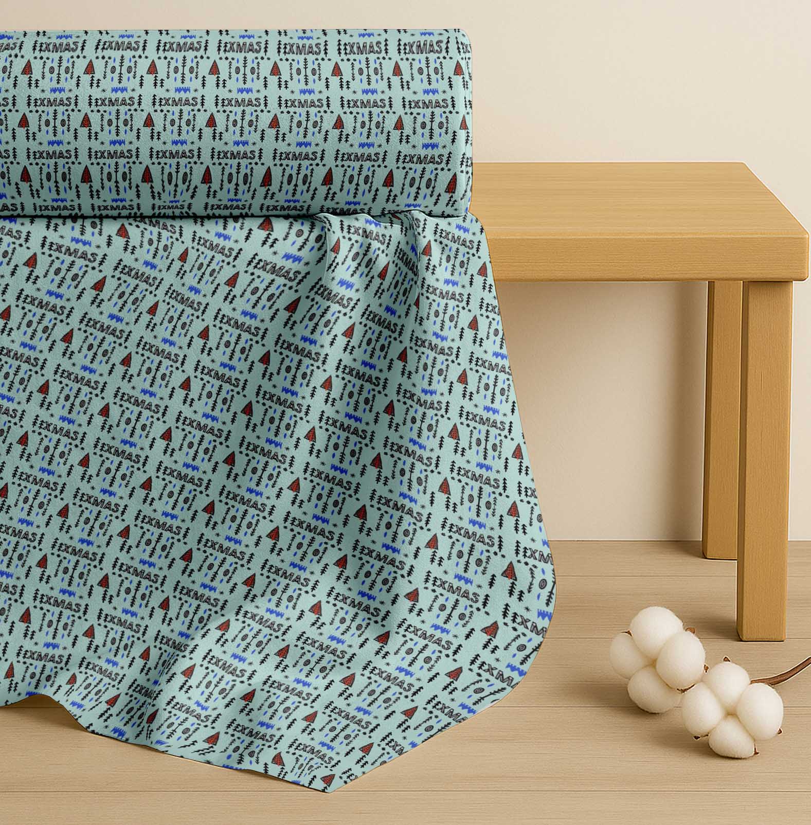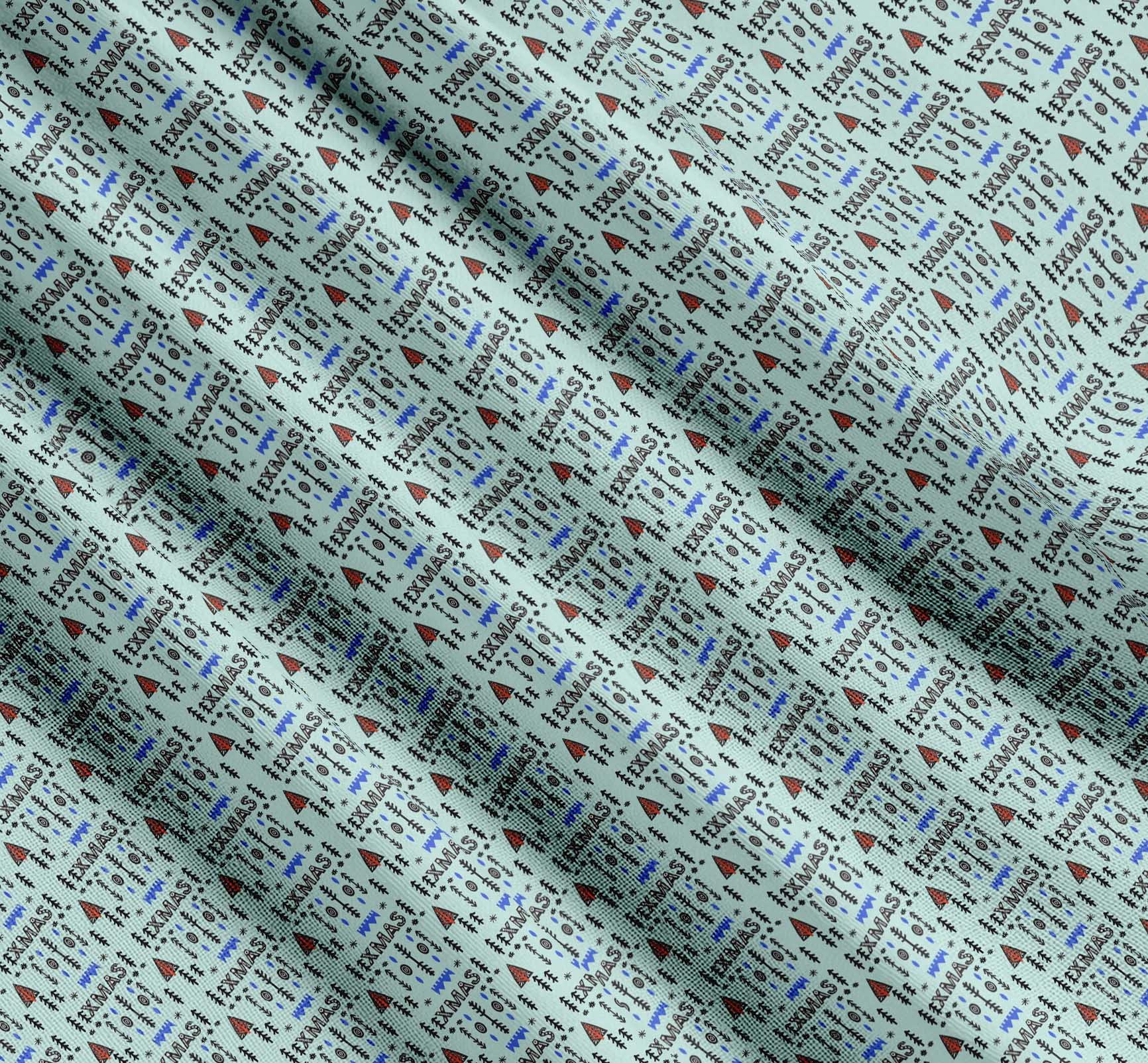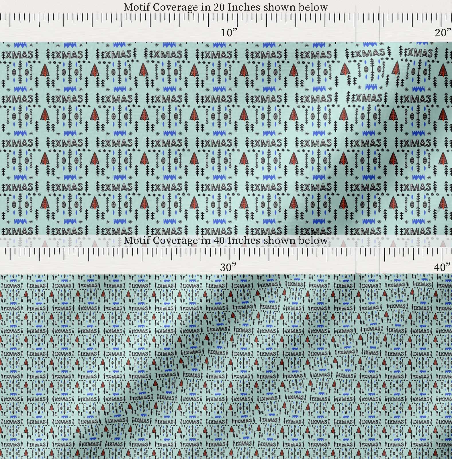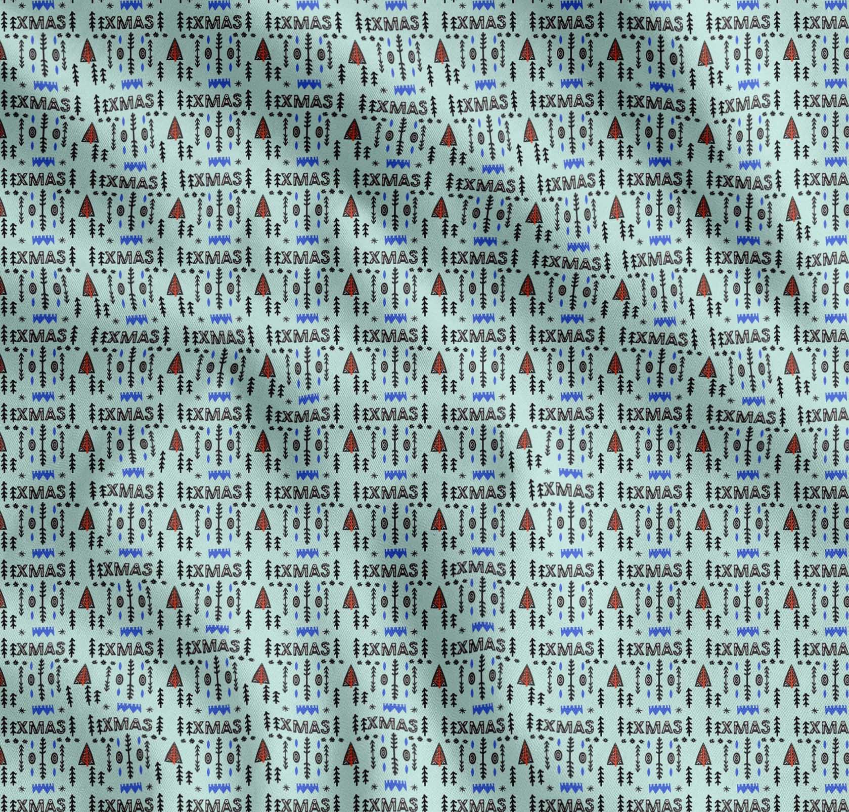 Soimoi Green Cotton Fabric Text & Christmas Tree Folk Art Fabric Prints By yard