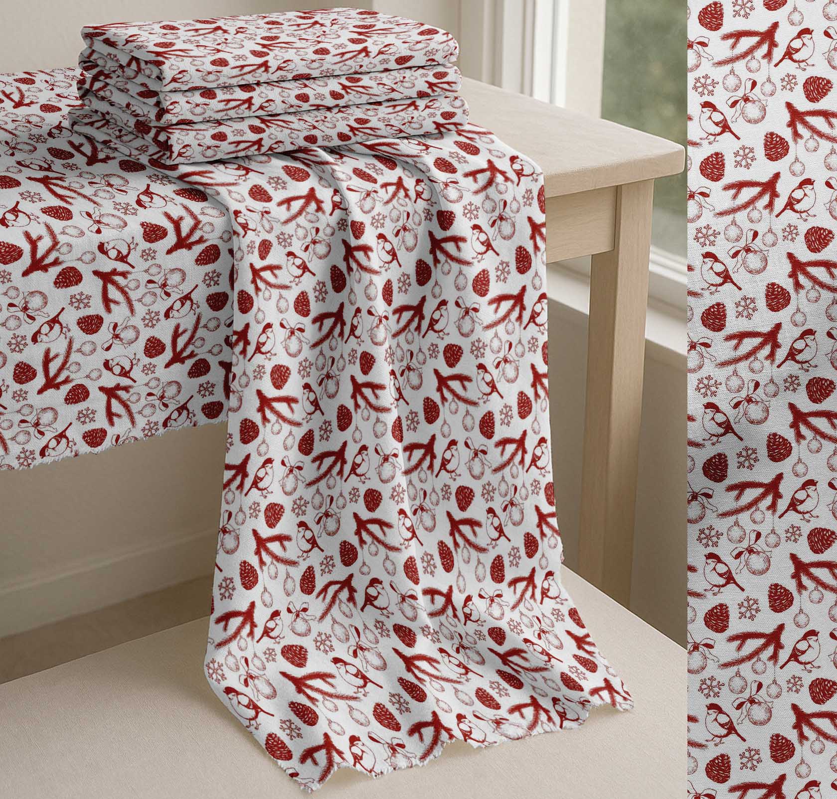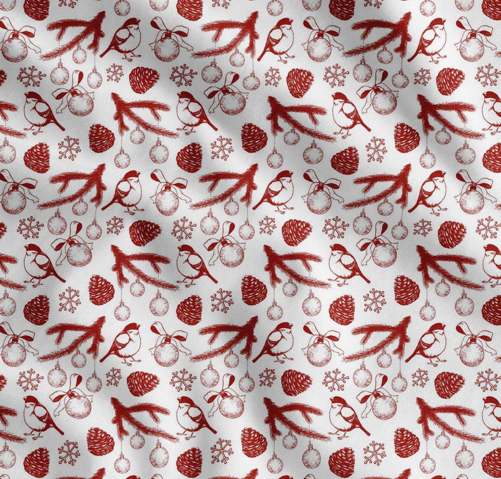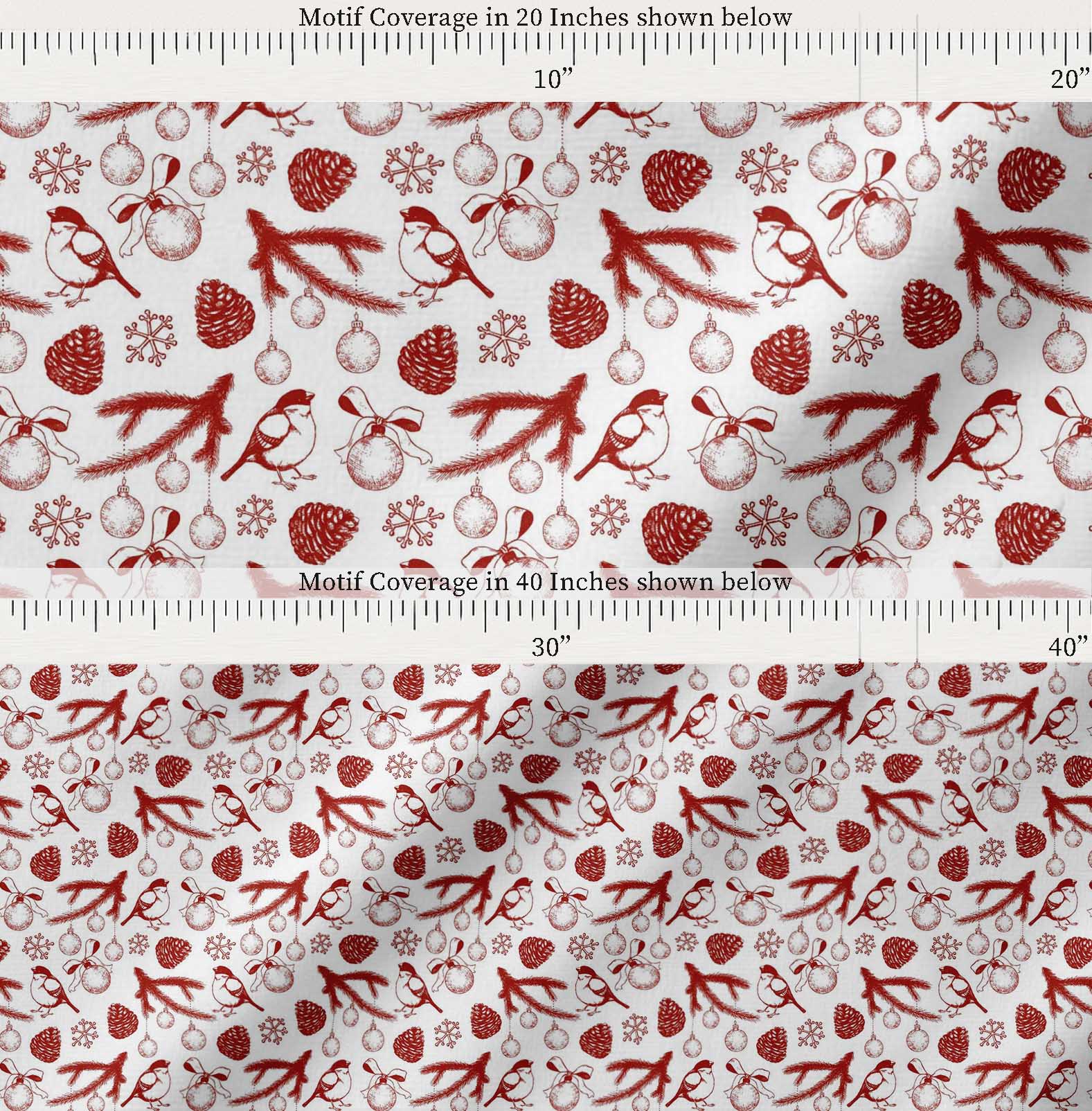 Soimoi Red Cotton Fabric Spruce Leaves & Baubles Christmas Decor Fabric Printed yard