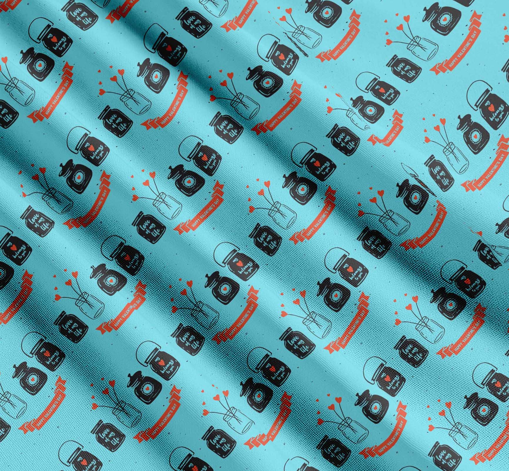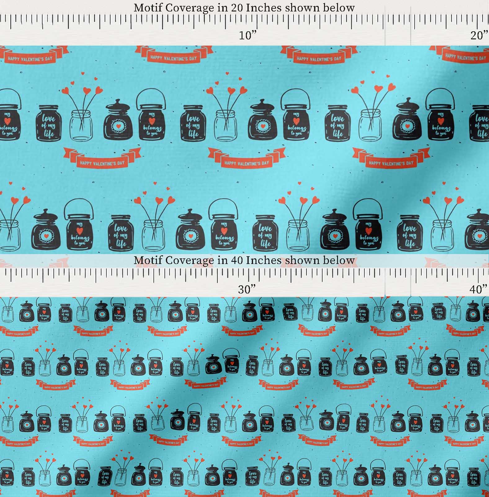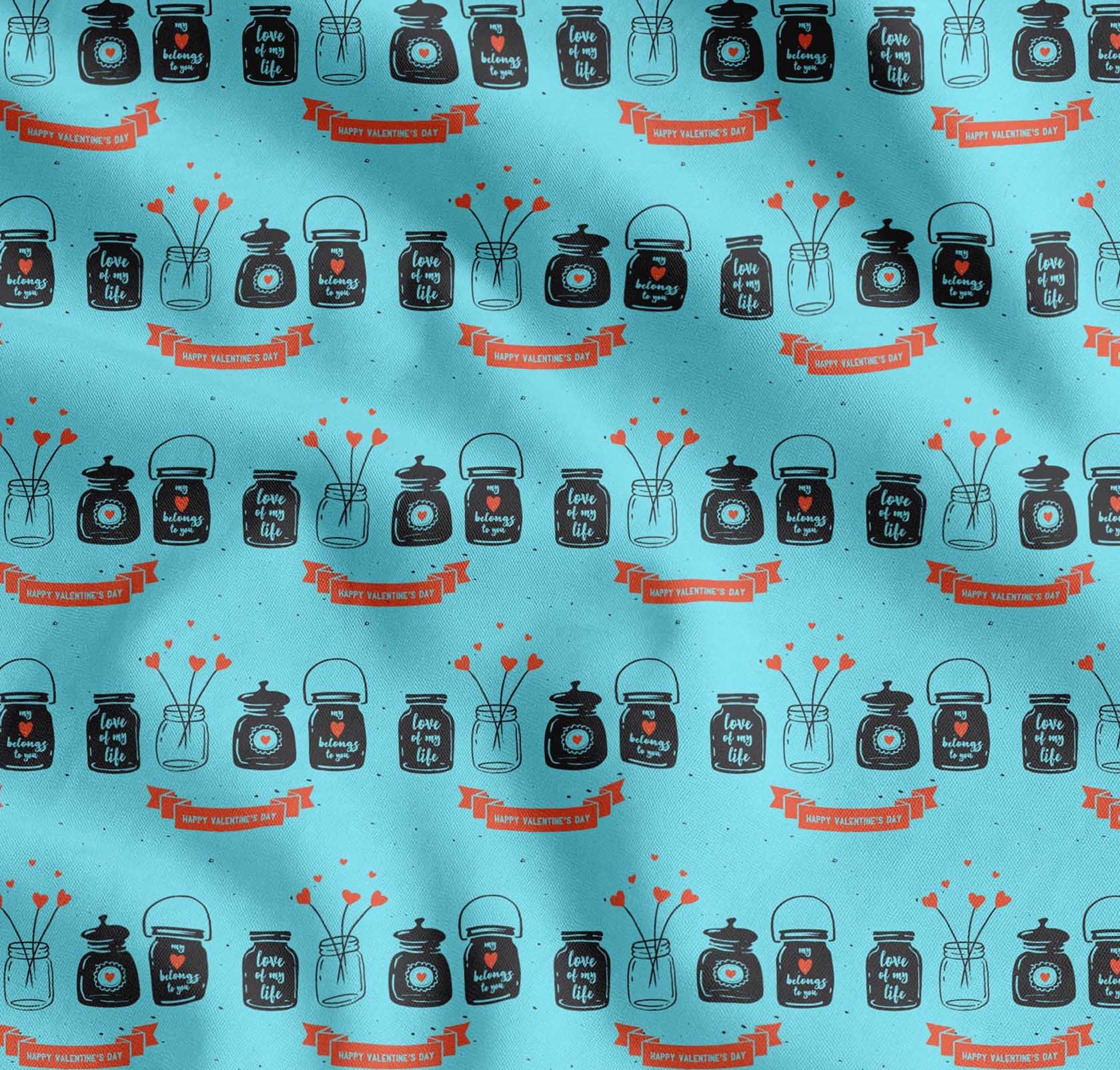 Soimoi Blue Cotton Fabric Jar & Happy Valentine Day Text Fabric Prints By yard