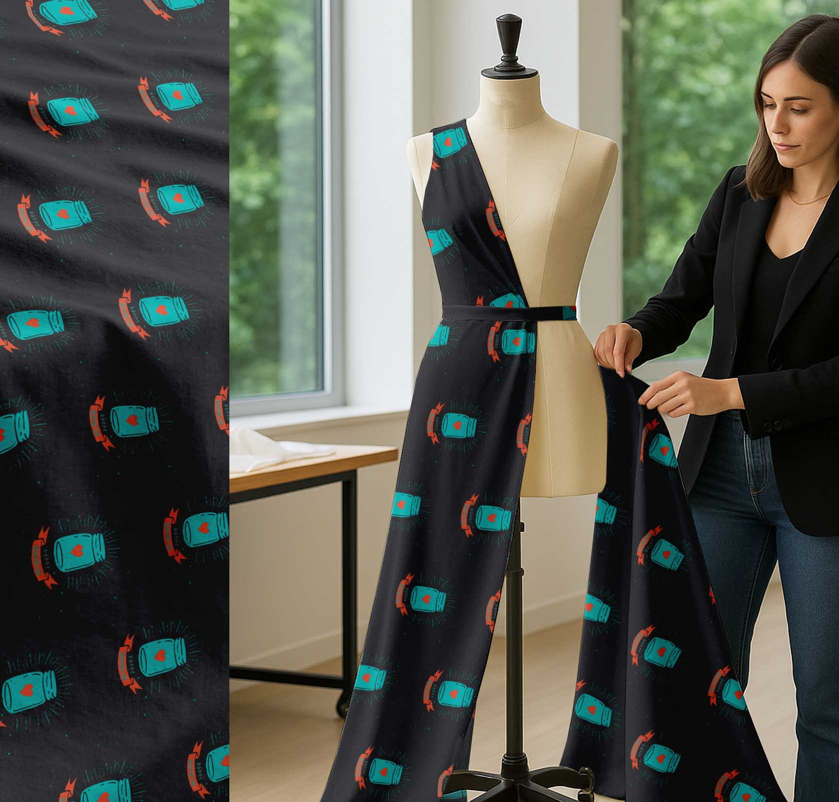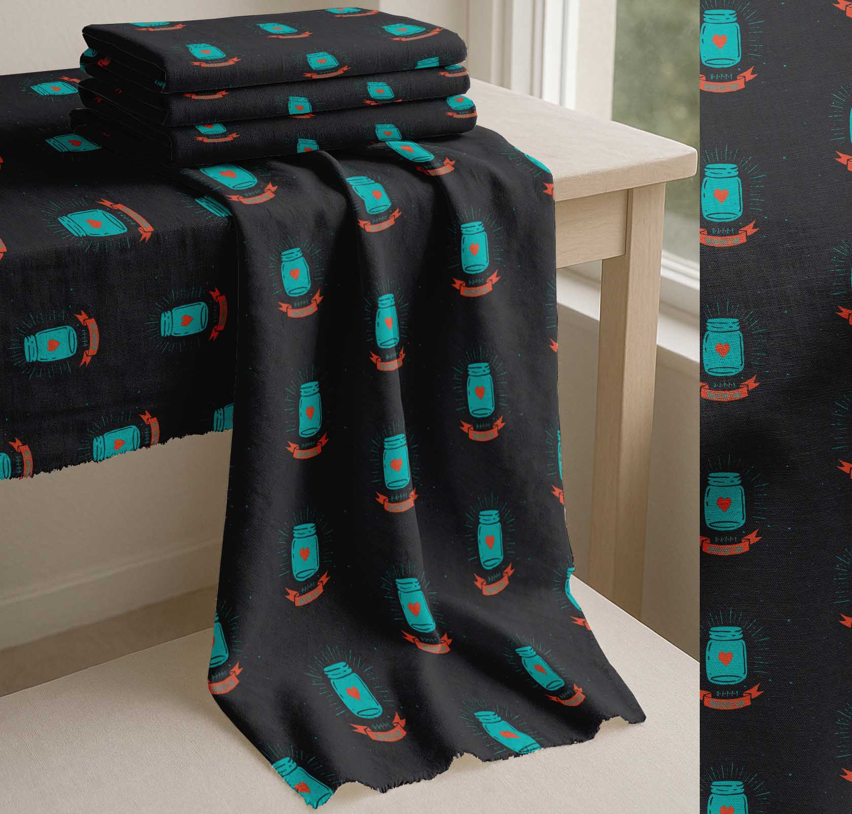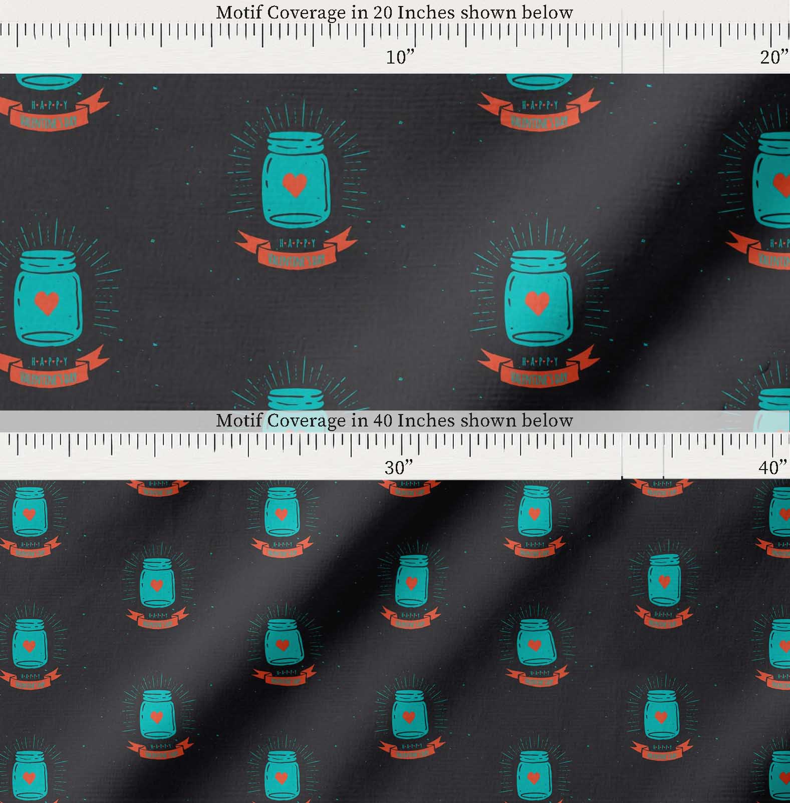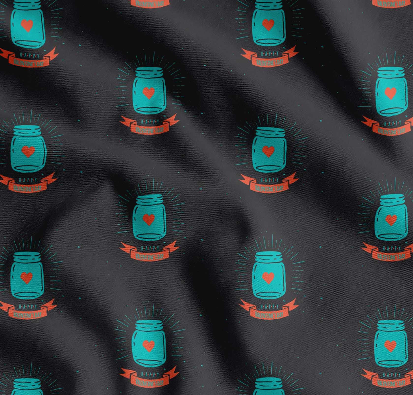 Soimoi Green Cotton Fabric Jar & Happy Valentine Day Text Printed Craft Fabric by the yard