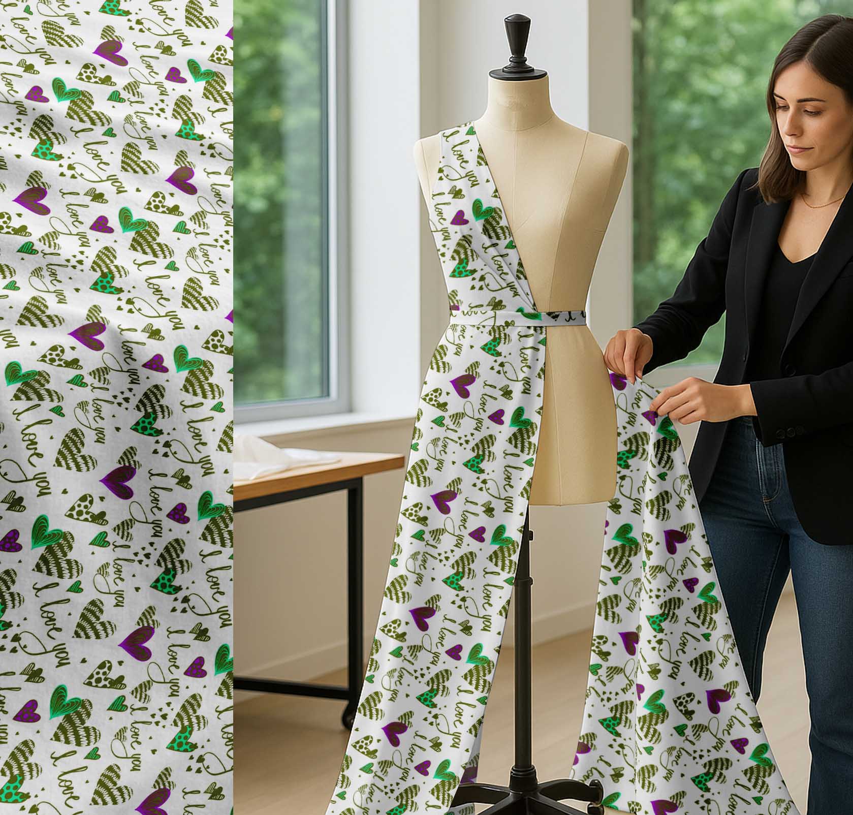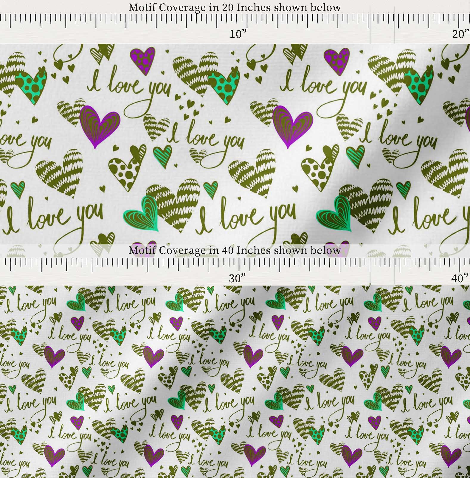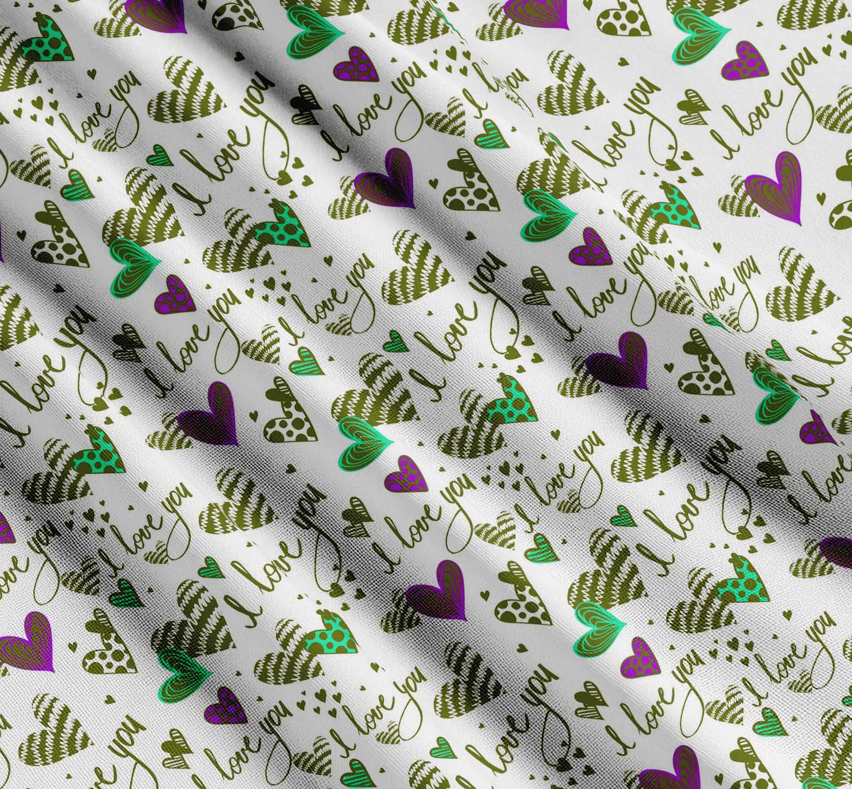 Soimoi Cotton Green Fabric - by The Yard - Heart & I Love You Text Textile - Romantic and Whimsical Designs for Stylish Creations Printed Fabric