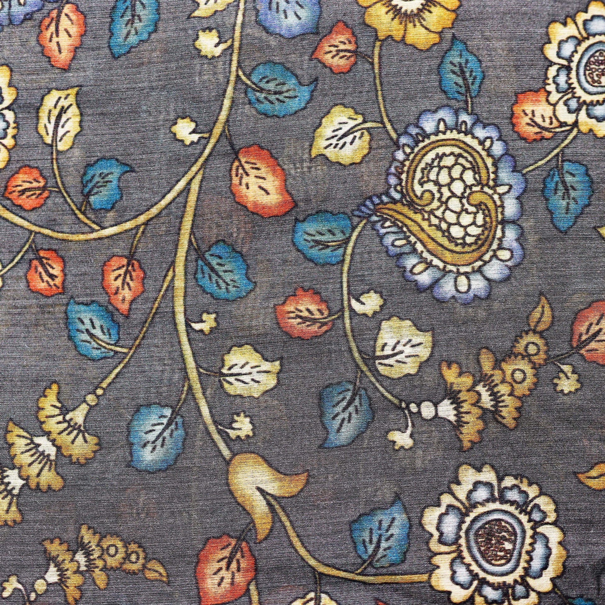 Dark Grey with Contrast Floral Print on 100% Silk Tussah